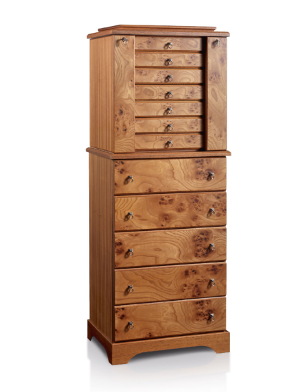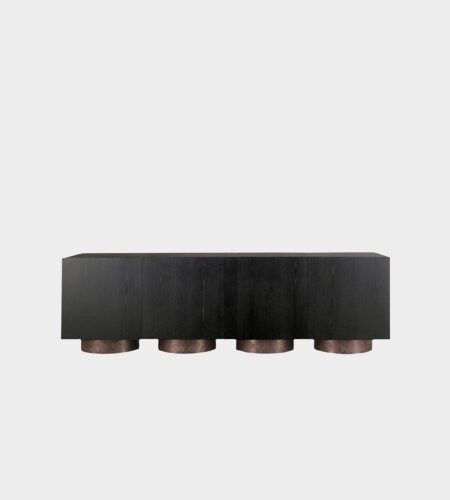 Unleash your style with Impavido, a powerful free-standing sculpture that doubles as a display piece for your favorite objects. Available in a variety of wood finishes, this asymmetrical brutalist ship holds seven drawers with luxurious leather mats. Showcased here in sandblasted Larch, it’s a true statement piece.