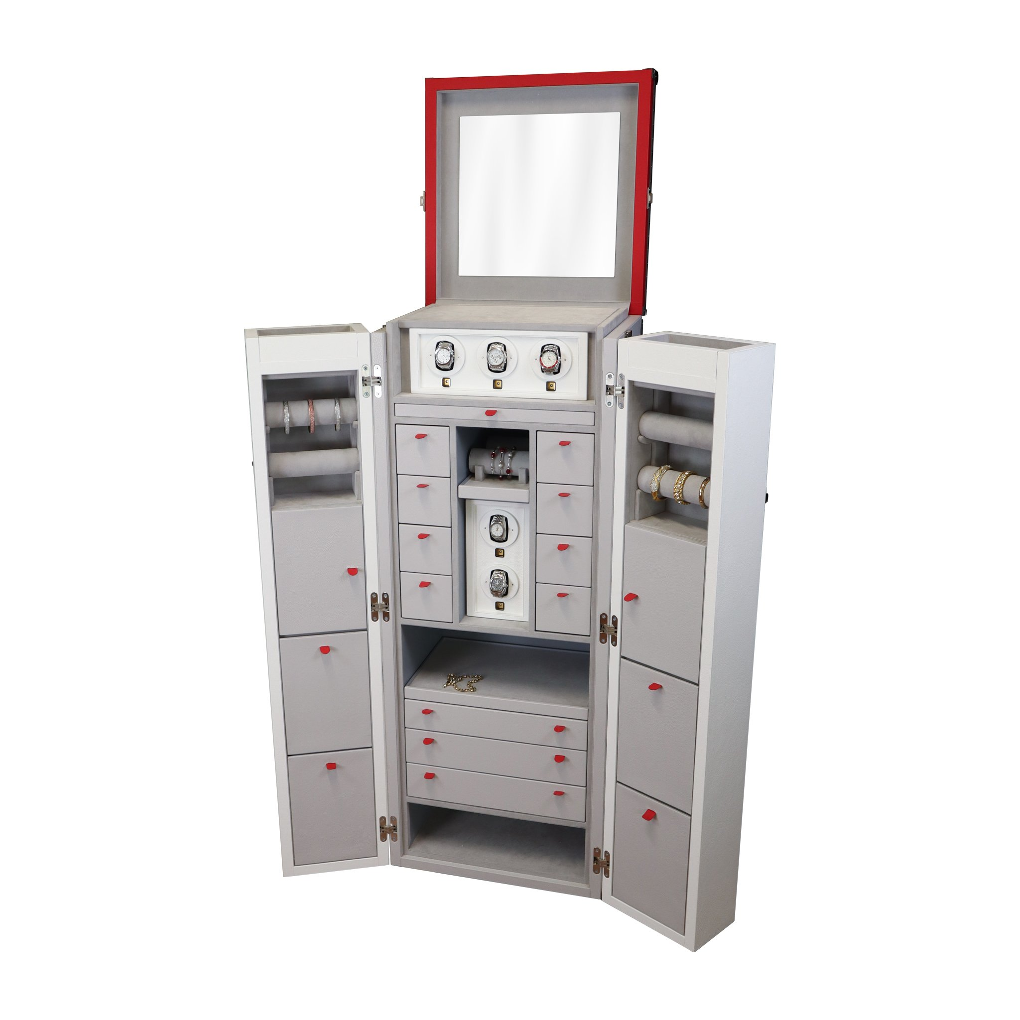 Indulge in luxury with the Leather Covered Maison Trunk by Agresti Lui. This polished steel and leather home trunk boasts five Swiss watch winders and drawers for jewelry, all lined with ultrasuede for a decadent touch. A sophisticated addition to any home, perfect for the connoisseur of fine craftsmanship.